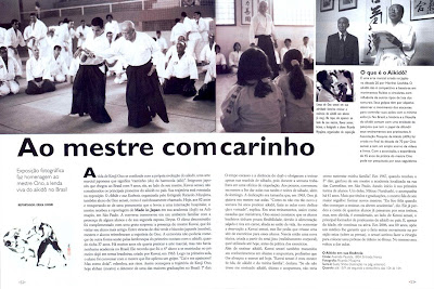 Isso mesmo. Eu espero que ele consiga realizar seus planos de publicar uma coleção da caligrafia de O-Sensei e a construção de um museu dedicado a O-Sensei. Durante a minha infância, Abe Sensei visitava com freqüência Iwama acompanhado de sua filha. É um homem dedicado ao estudo com um profundo conhecimento do Kojiki (Registro sobre Assuntos Antigos), o livro mais antigo da historia japonesa, livro que O-Sensei citava ao explicar o Aikido. Abe me falava muito sobre o Kojiki, mas como era tão complicado, temo que as explicações entravam por uma orelha e saiam pela outra. (risos)
